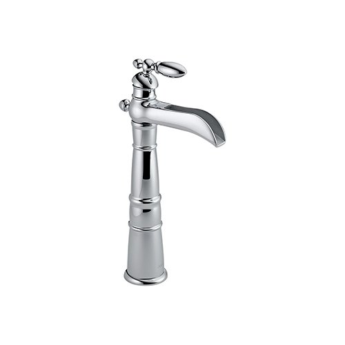 Delta 754 Victorian Single Handle Centerset Lavatory Faucet with Riser - Less Pop-Up, ChromeVictorian Collection With design cues inspired by the fleur-de-lis, the Victorian Kitchen Collection features a classic, timeless architecture. This bold design makes a distinctive statement in the kitchen that's reminiscent of another era. The bold Victorian Bath Collection adds an element of distinction to any bath. Featuring a new single-hole faucet, numerous shower configurations, as well as a variety of stylish finishes, this beautiful collection provides modern-day comforts with timeless, old-world charm.Delta 754 Victorian Single Handle Centerset Lavatory Faucet with Riser - Less Pop-Up, Chrome Features:; Full collection carries old world charm through an entire home.; Soft curves offer a timeless design.; Unique channel style spout design; Single lever design for ease of operation and control.; Overall 5 1/8" long, 13 3/8 " high; Single hole installation; Lifetime Faucet and Finish WarrantyDelta 754 Victorian Single Handle Centerset Lavatory Faucet with Riser - Less Pop-Up, Chrome Specifications:; Single hole installation; Number of Handles:1 ; Installation Type: Centerset ; Valve Type: Ceramic valve ; Flow Rate: 1.5 gpm @ 60 psi, 5.7 L/min @ 414 kPa ; Spout Length: 5 1/8" ; Spout Total Height: 13 3/8" ; Spout Height Deck to Aerator: 8 1/2" ; Drain type: Less pop-up ...Read more